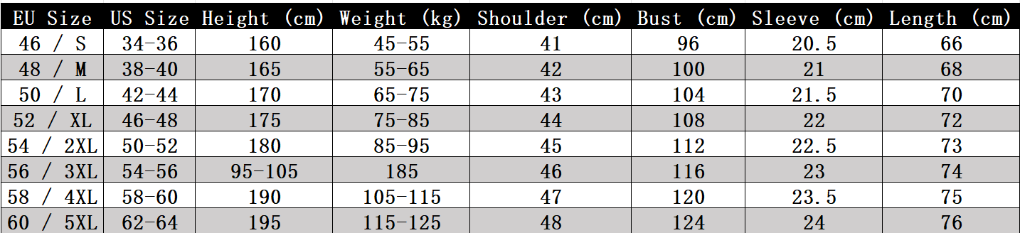 All dimensions are measured in centimeter (cm). Please allow 1-2cm normal error due to manual measurement. Weight unit is kilogram (kg). We recommend you choose one size up for a more comfortable and stylish fit.