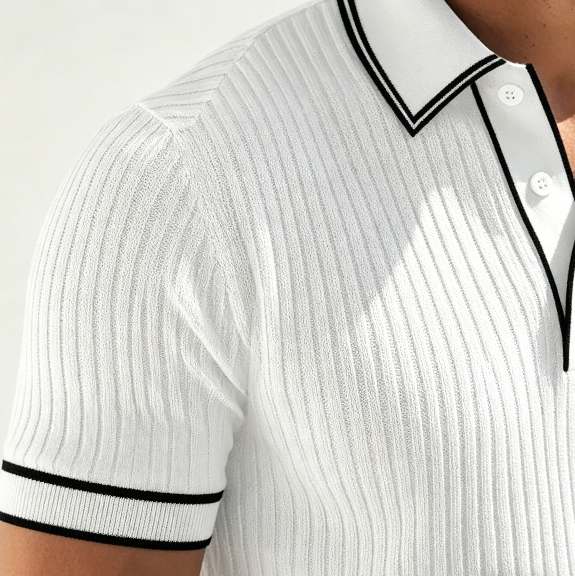 Crafted from premium vintage vertical striped knit fabric, this men's polo shirt features delicate 3D texture and soft skin-friendly touch, bringing you elegant upper-body texture.